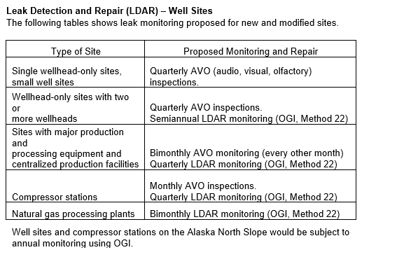 The proposal included an EPA test method conducting LDAR monitoring in 40 CFR 60, Appendix K, “Determination of Volatile Organic Compound and Greenhouse Gas Leaks Using Optical Gas Imaging.”