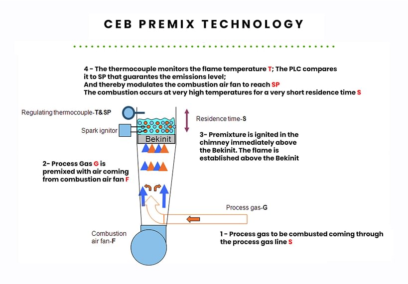 The CEB is based on a unique and patented pre-mix metal fiber surface thermal oxidation technology with premixed surface combustion system designed to operate at high temperature in the range of 1800°F – 2200°F