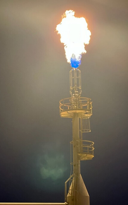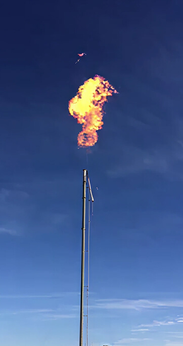 Decrease the total amount of emissions by half: Because VMSA flares are proven to achieve at least 99% DRE, it decreases flare emissions by at least 50% compared to regular 98% DRE flares. As a result, a VMSA flare can enable doubling the throughput of oil production in the case of routine flaring (in field test cases we have achieved 99.9% DRE).