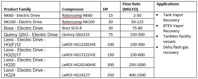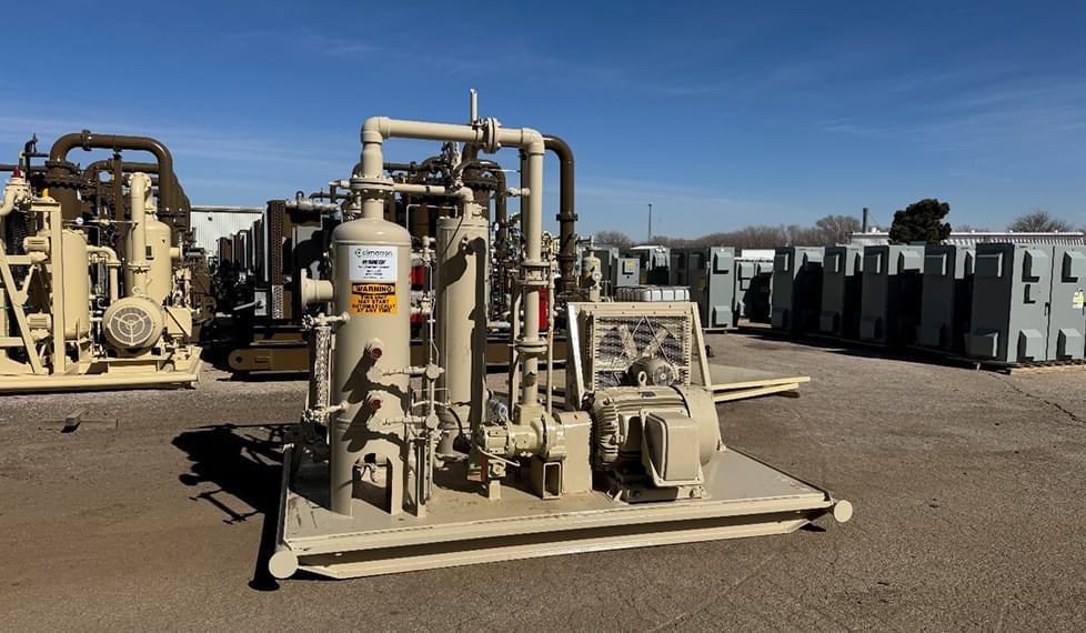 When purchasing Vapor Recovery Compression Equipment doesn’t fit into your budget and/or capital is better utilized elsewhere, Cimarron offers rental compression to fit a broad range of low pressure applications. Specifically, our equipment is designed to move low pressure, high BTU gas from Oil and Gas facilities to field gathering systems. Our fleet consists of primarily electric motor driven rotary screw packages, rotary vane packages and reciprocating compression packages designed for Tank Vapor Recovery as well as Wellhead Booster applications. When the application requires equipment not currently in our rental fleet, we are able to add our new standard VRU’s to the fleet to fill our customer’s needs.